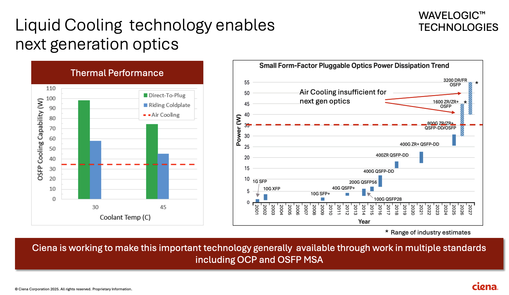 The onslaught of AI and HPC has made liquid cooling more attractive than ever, and leading vendors such as Ciena are quickly moving to innovate, partner, and acquire key technologies.
